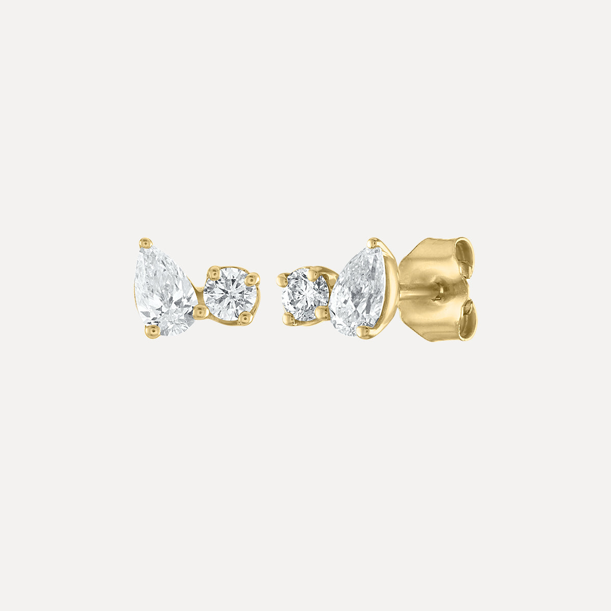 Crafted in solid 14K gold, each stud mirrors a story of growth, guidance, and shared sparkle. The larger pear symbolizes the mother’s strength and unconditional love, while the smaller round diamond reflects the daughter—bright, pure, and always connected.