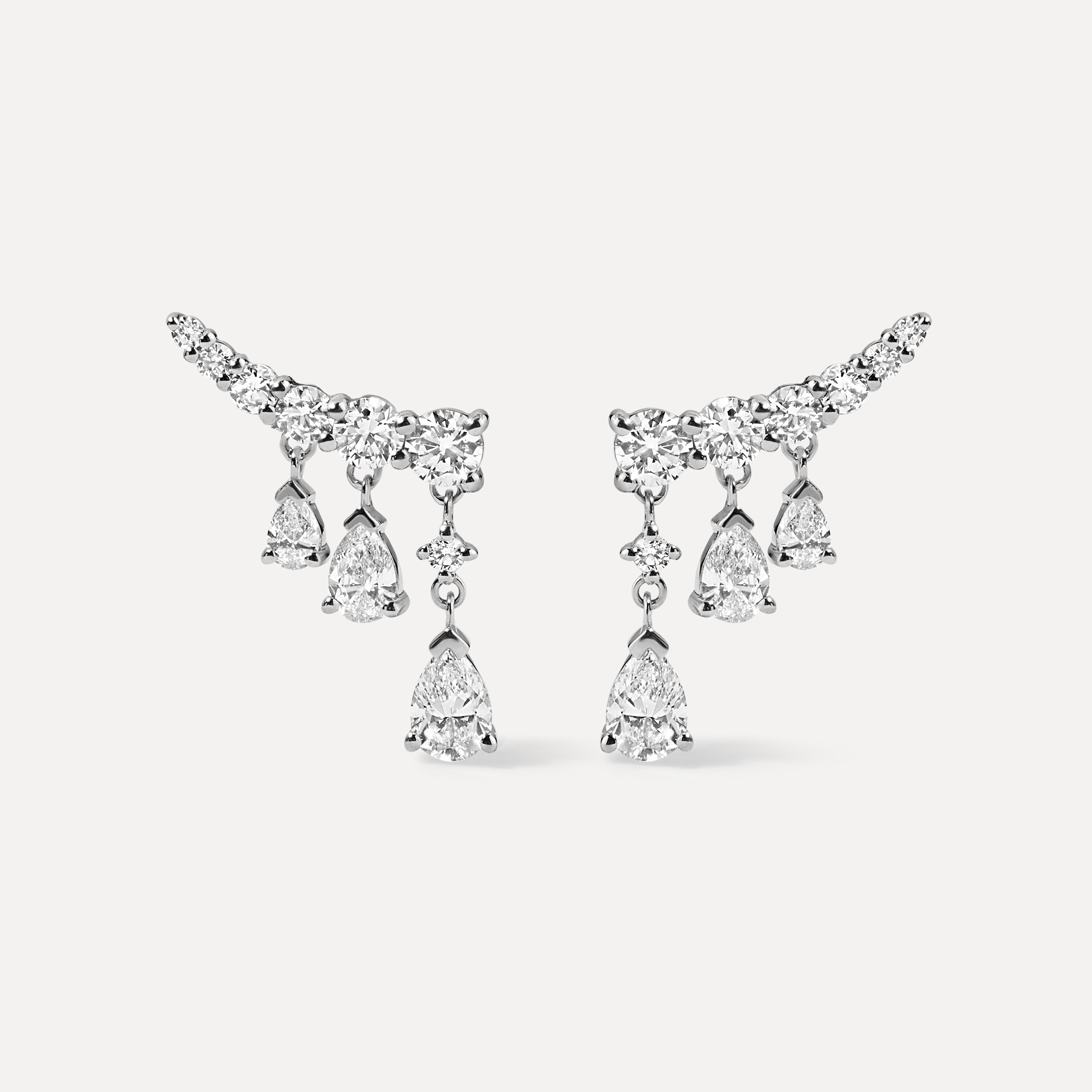 Elevate your everyday elegance with our Cascade Pear & Round Diamond Earrings, crafted in 14k solid gold and designed to mesmerize from every angle. A graceful curve of round lab diamonds hugs the ear, while three perfectly suspended pear-shaped lab diamonds dance below—catching the light with every move.